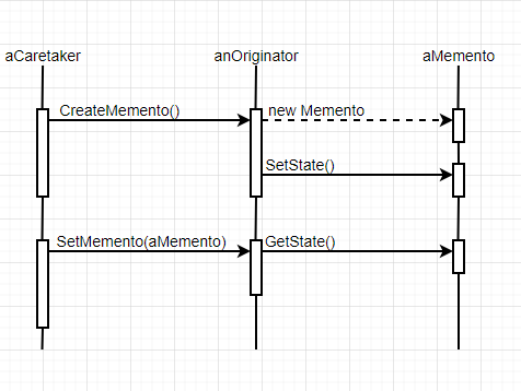 - 存储增量式改变:如果备忘录的创建及返回顺序是可以预测的,备忘录可以仅存储内部状态的变化量,而不是全部内部状态