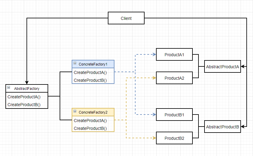 - Client:仅使用由AbstractFactory和AbstractProduct类声明的接口